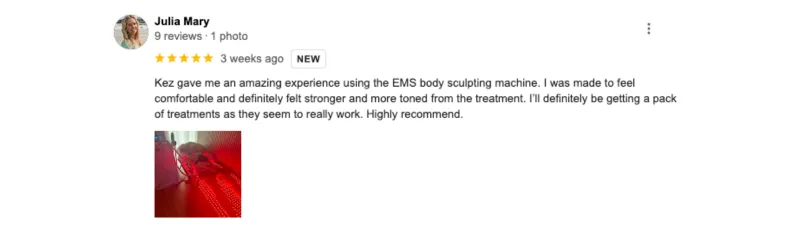EMS Sculpting then takes over by sending high-intensity electromagnetic pulses deep into the muscles—forcing them to contract and strengthen. This tightens, lifts, and tones the area while further accelerating fat reduction and body shaping. The addition of LED Light Therapy boosts skin rejuvenation and overall results.